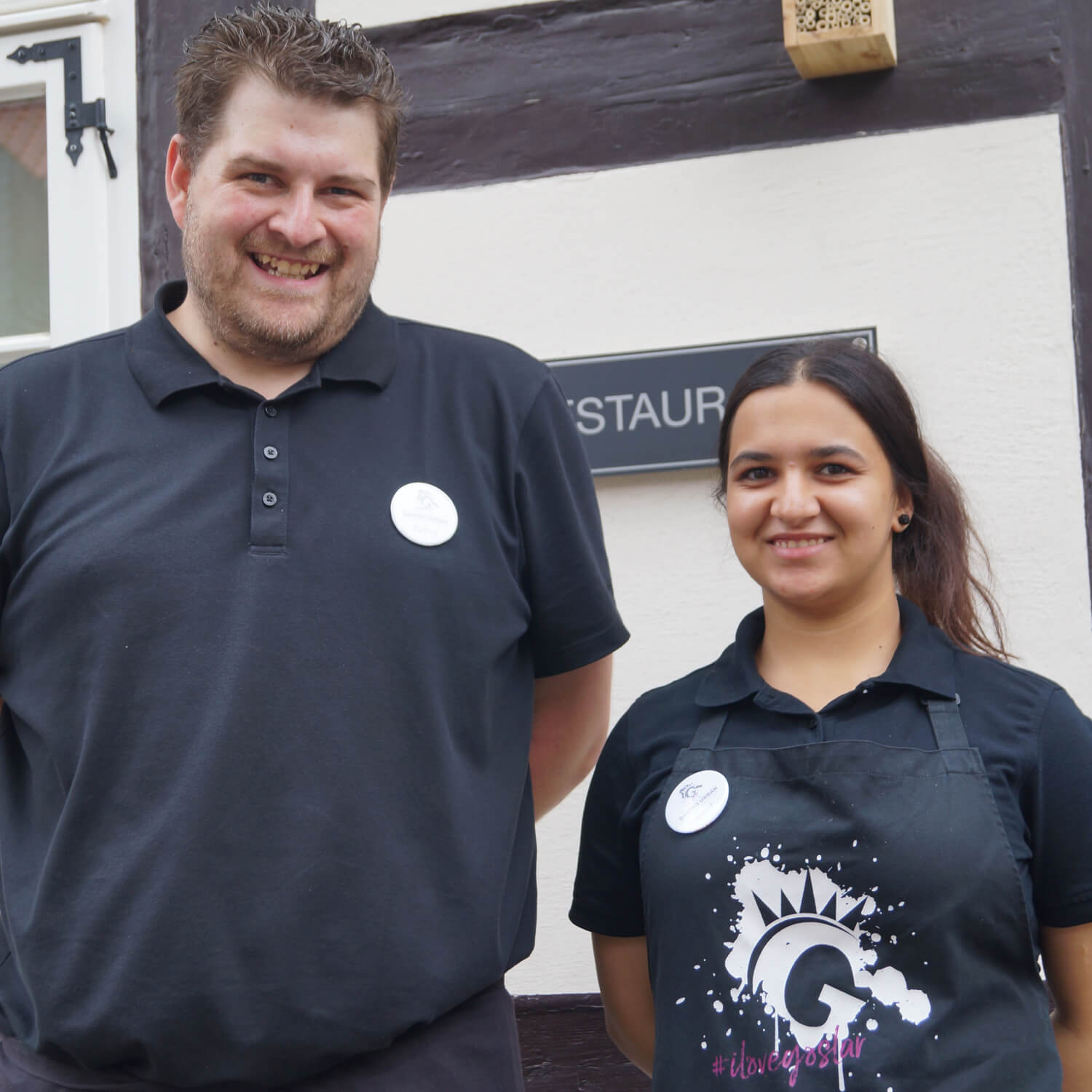 Ein paar Meter weiter beobachte ich Hend und Patrick dabei, wie sie nochmal an allen Tischen nachsehen, ob auch wirklich jedes Detail stimmt. Sie drapieren noch mal jede einzelne Gewürzmühle nach und wischen mit einem feinen Baumwolltuch über einzelne Stellen an den Tischen. Nach dieser langen Zeit ohne jegliche Veranstaltungen sind die beiden wahnsinnig froh, dass sie an diesem Abend wieder Gäste bewirten und ihnen eine unbeschwerte Zeit bereiten können. „Die Zeit im Lockdown ohne Kontakt zu unseren Gästen war wirklich nicht schön. Ich hoffe, wir können einem weiteren Lockdown in der Gastronomie entgehen!" erklärt Hend mir mit hoffnungsvoller Miene. Ich weiß sofort was Hend mir damit sagen möchte und denke an unser ausgeklügeltes Hygienekonzept. Wir gestalten jede Veranstaltung und jeden Besuch in unseren Gastronomien sicher und garantieren zusätzlich für sichere Raumluft*.